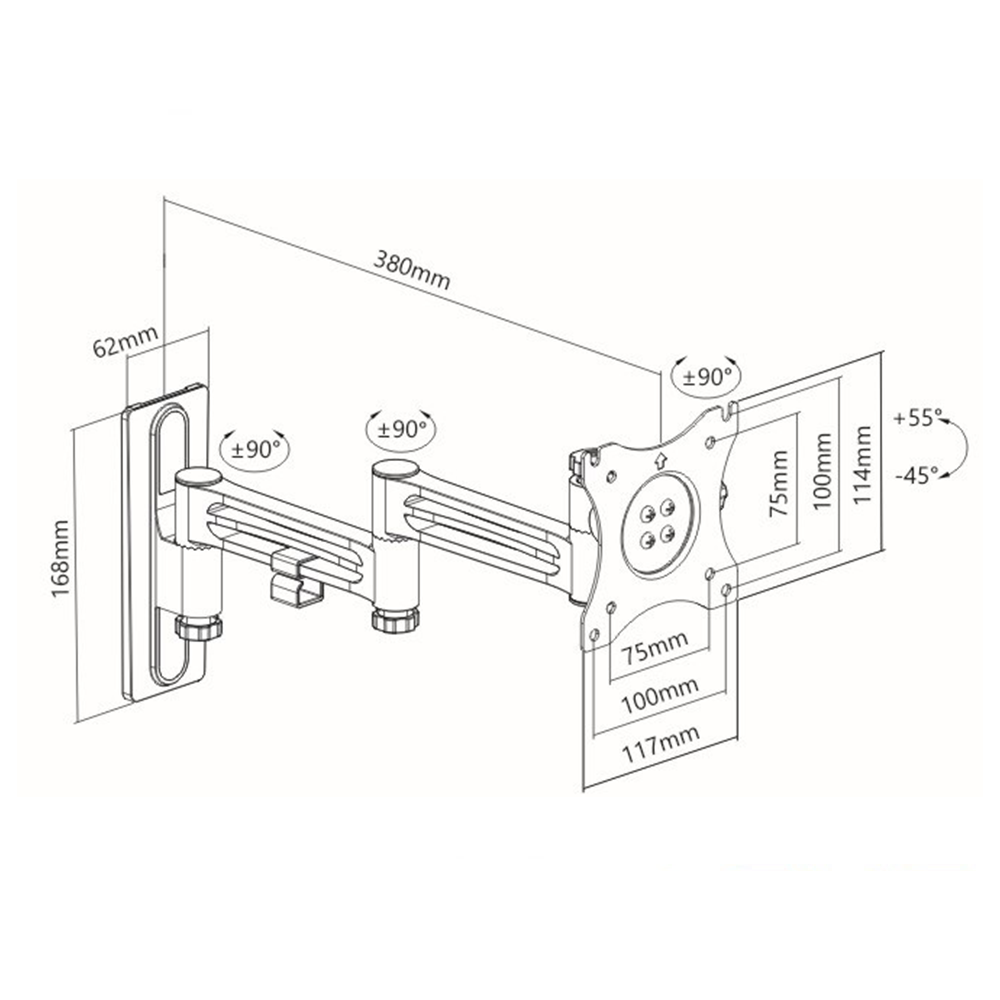 Güçlü ve Hafif Yapı: Sadece 1,1 kg ağırlığında olmasına rağmen, 27 inç büyüklüğe kadar olan LCD/LED ekranları güvenle taşır.