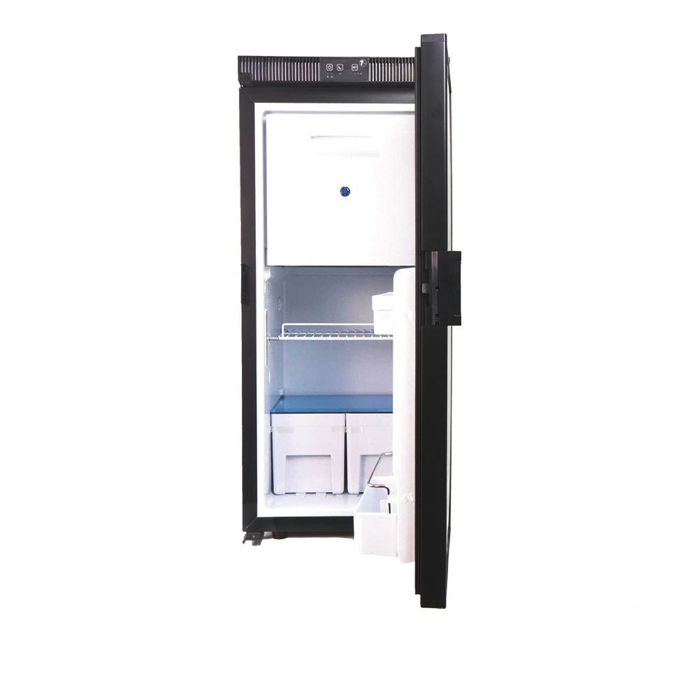 Berhimi’nin 100 litrelik yeni nesil kompresörlü buzdolabı, karavan ve teknelerde geniş depolama alanına ihtiyaç duyan kullanıcılar için özel olarak geliştirilmiştir. Şık siyah gövdesi ve modern “slim” (ince-uzun) yapısı sayesinde mutfak alanında yer tasarrufu sağlarken, 12V ve 24V enerji sistemleriyle tam uyumlu çalışarak off-grid konaklamalarda yüksek performans sunar.