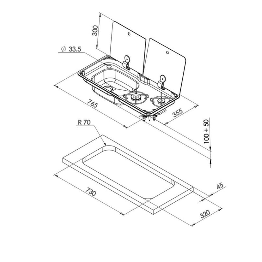 • Ayrık Cam Kapak Tasarımı: Ocak ve evye bölümleri birbirinden bağımsız, ısıya dayanıklı temperli cam kapaklarla donatılmıştır. Bu özellik kullanım esnekliği sağlar.