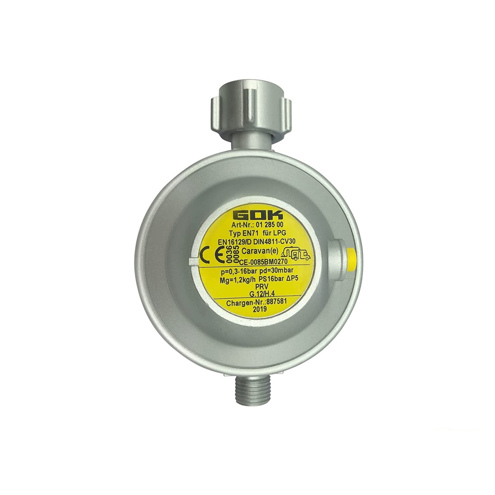 GOK EN71, Hobby, Knaus ve Weinsberg gibi Avrupa’nın önde gelen karavan üreticilerinin fabrikasyon olarak tercih ettiği, yüksek güvenlik standartlarına sahip bir gaz regülatörü ve hortum setidir. Standart çelik tüplerin yanı sıra Alugas gibi alüminyum tüplerle de tam uyumlu olan bu sistem, karavan içindeki cihazların (ocak, ısıtıcı, buzdolabı) ihtiyaç duyduğu stabil 30 mbar basıncı sağlar.