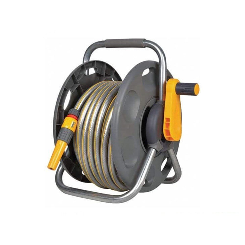 Zahmetsiz Depolama: Manuel sarma kolu, 25 metrelik hortumun hızlı, karışmadan ve düzenli bir şekilde toplanmasını sağlayarak karmaşayı önler.