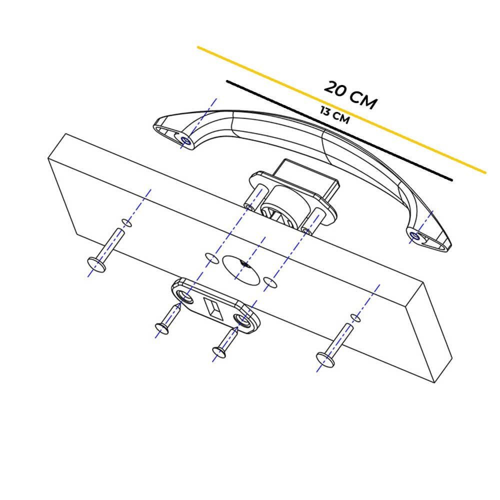 Geniş Montaj Mesafesi: İki montaj deliği arasındaki 130 mm’lik mesafe, ürünün kapak üzerinde dengeli durmasını sağlar ve sağlam bir tutuş sunar.