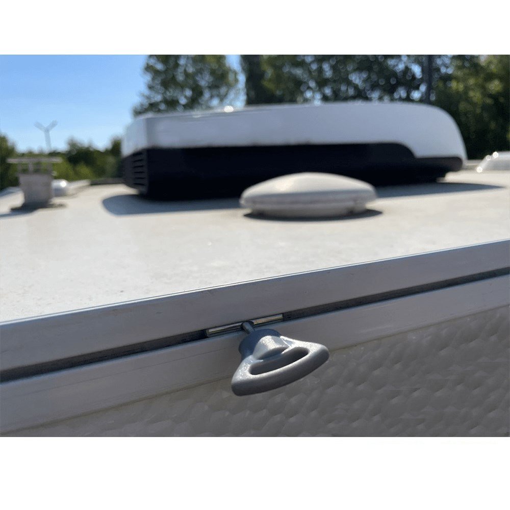 Çift Fonksiyonlu Kullanım: Sadece sabitleme görevi görmez; tasarım yapısı sayesinde ilave bir kanca takılarak karavan dışı için pratik bir askı aparatı olarak da kullanılabilir.