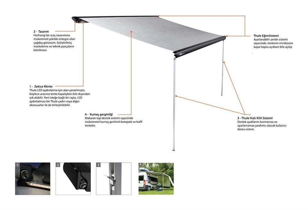 Rüzgar Güvenliği: Kompakt yapısına rağmen, ani hava değişimlerine karşı tenteyi sabitlemek için mutlaka Thule Hold Down Side Strap (Fırtına Bağlantı Seti) kullanmanız ve çok sert rüzgarlarda tenteyi kapalı tutmanız önerilir.